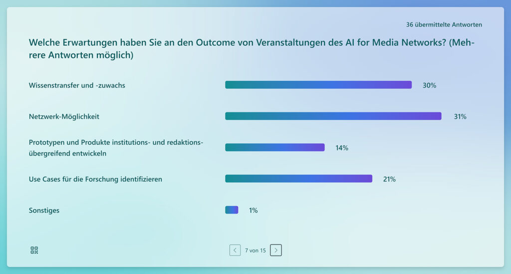 “The AI for Media Network has resonated, as evidenced by the strong interest in regular professional exchanges on AI applications”, commented Uli Köppen, Head of the AI+Automation Lab at BR. These insights will directly influence the planning of upcoming events.